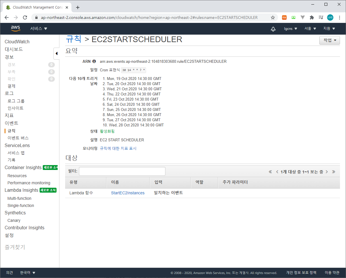 3) CloudWatch 규칙 등록