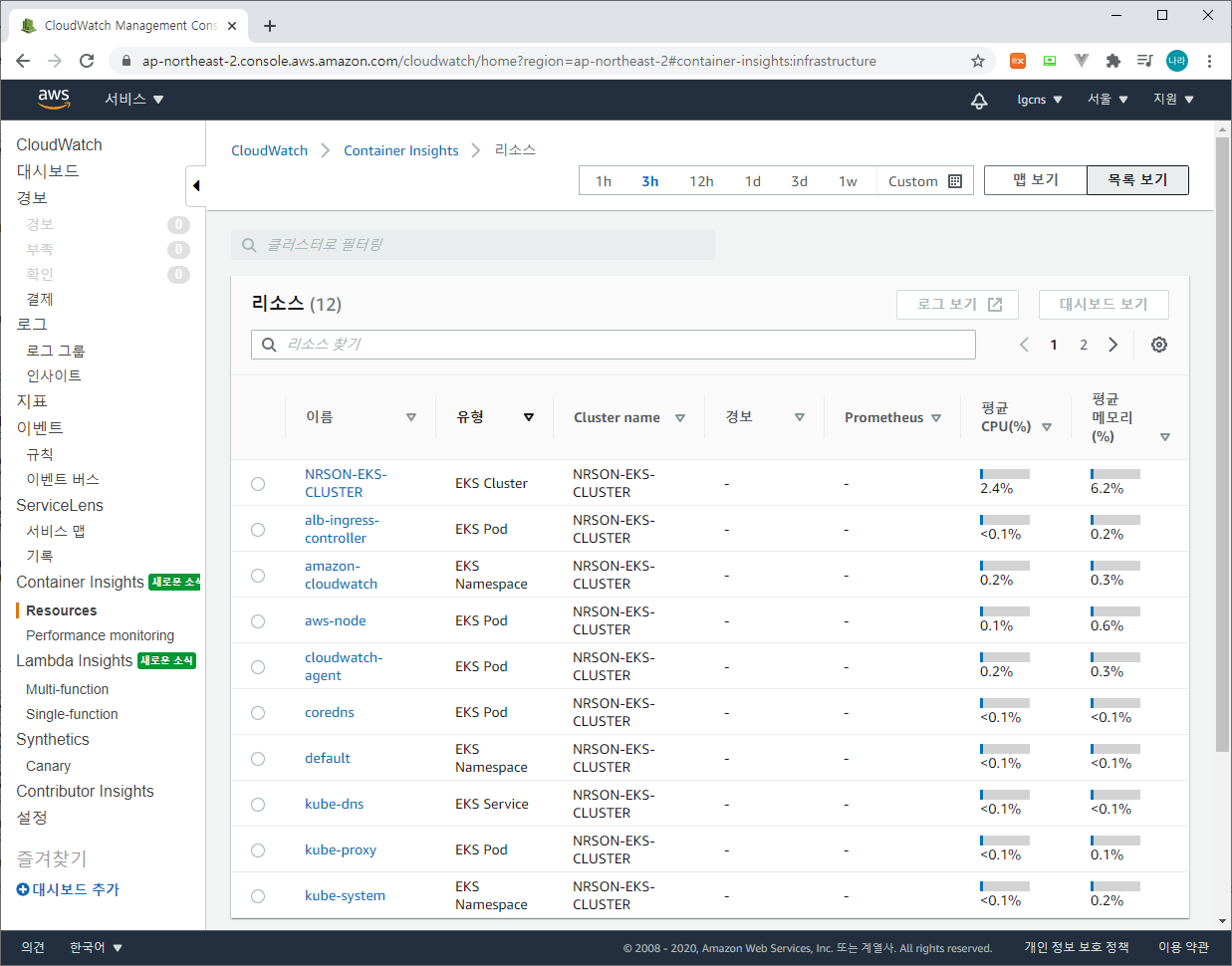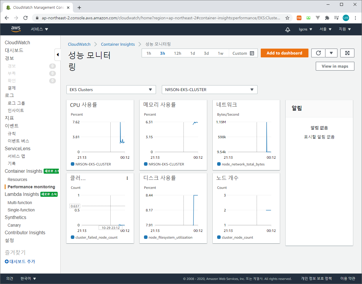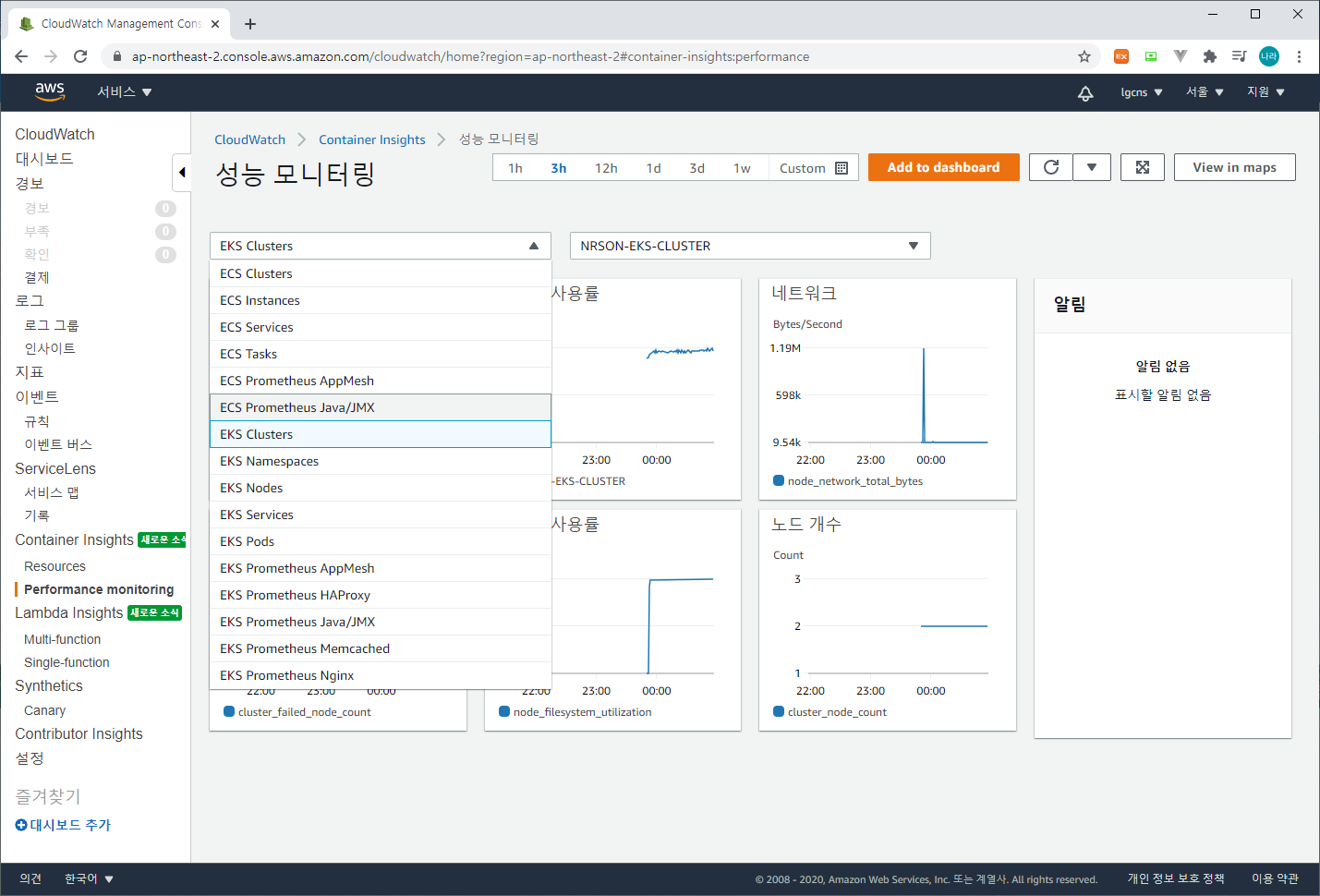 4) CloudWatch EKS 모니터링