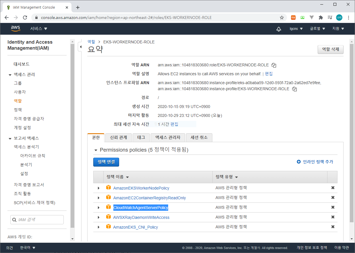 EKS 모니터링을 위한 IAM을 다음과 같이 추가한다.