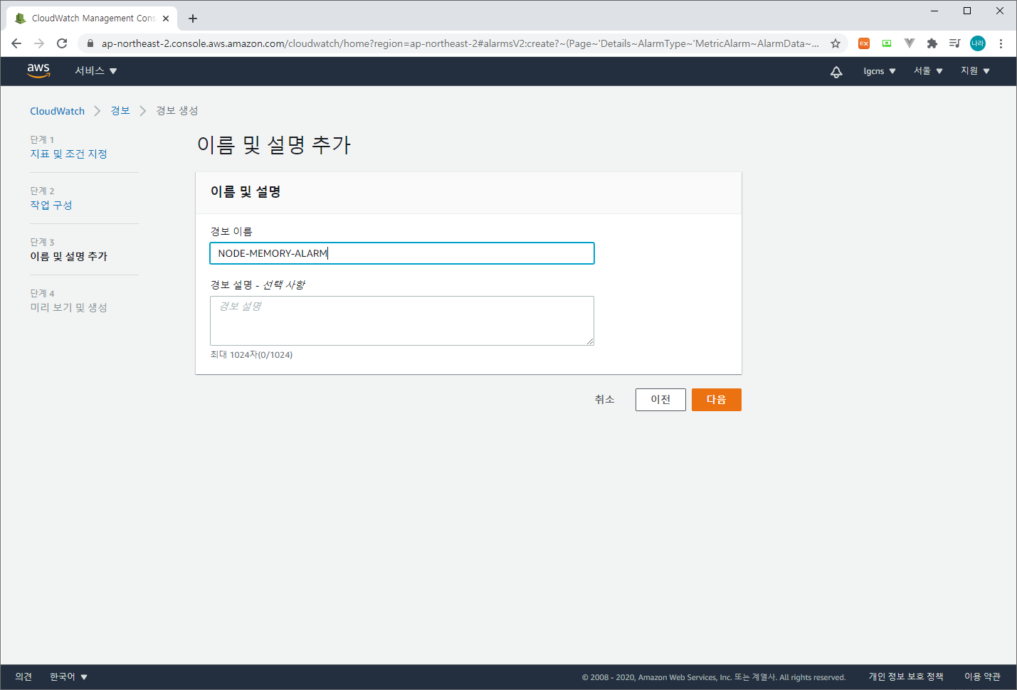 arn:aws:sns:ap-northeast-2:xxxxxxx:NODE_MEMORY_CloudWatch_Alarms_Topic