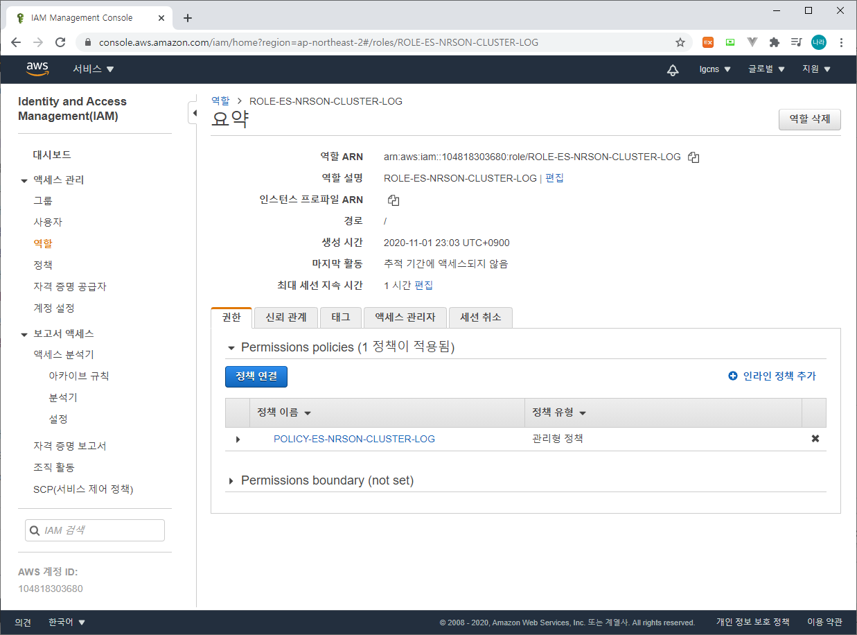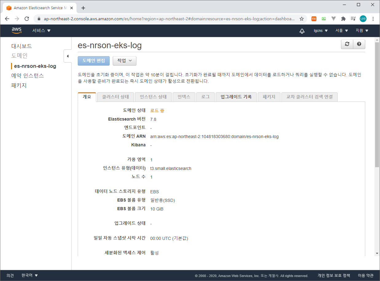 "Resource": "arn:aws:es:ap-northeast-2:104818303680:domain/es-nrson-eks-log/*"