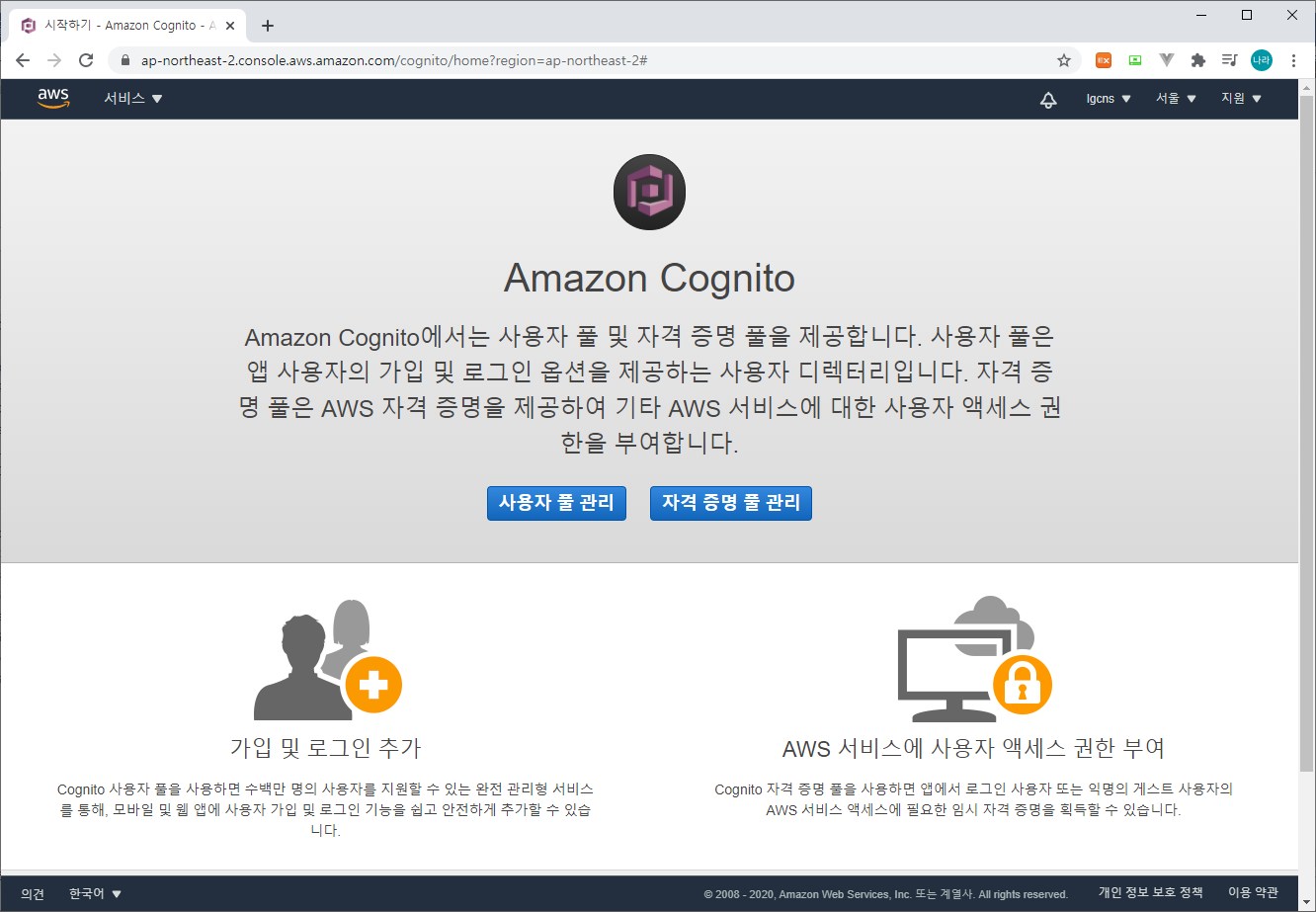 먼저 Amazon Cognito 사용자 풀을 생성한다.