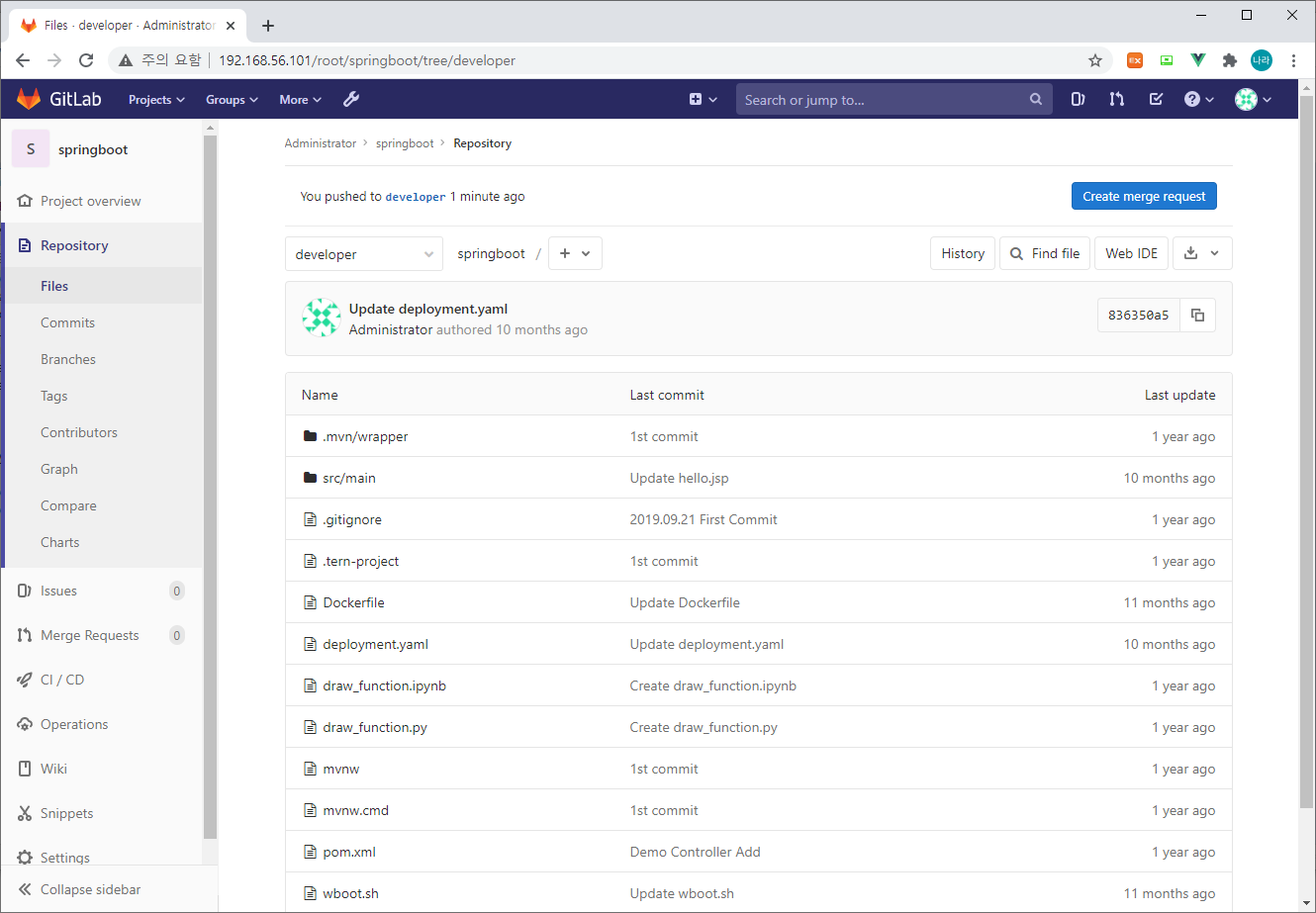 remote: http://192.168.56.101/root/springboot/merge_requests/new?merge_request%5Bsource_branch%5D=developer