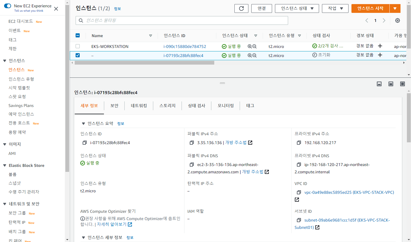 복원 작업도 몇분정도 소요되며, 이 시점에 아래와 같이 실제 EC2 인스턴스와 볼륨이 생성되며 복원이 진행되는 것을 확인할 수 있다.