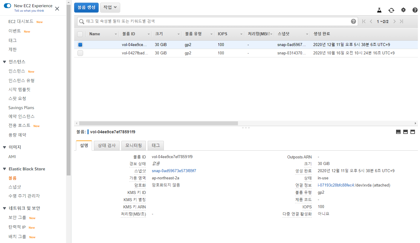 복원이 완료되었으면, 정상적으로 이전 EC2 인스턴스가 복원되었는지 확인하기 위해 다음과 같이 이전 EC2와 비교를 해보도록 하자.