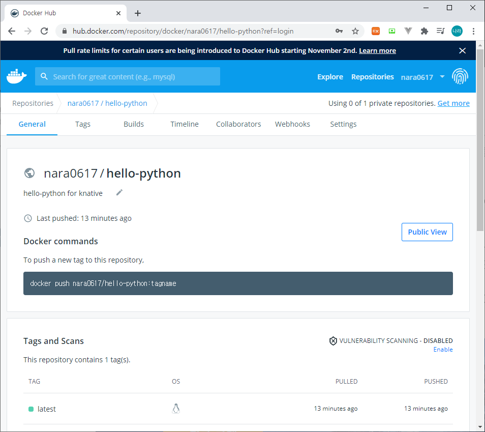 위와 같이 현재 Knative Build Pod 이외에 기동되어 있는 Pod는 없는 상태이다.