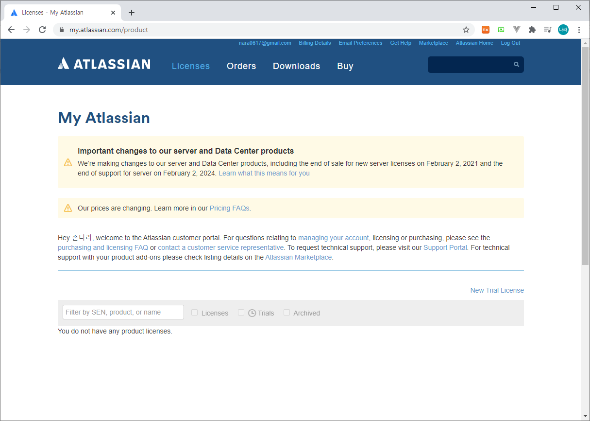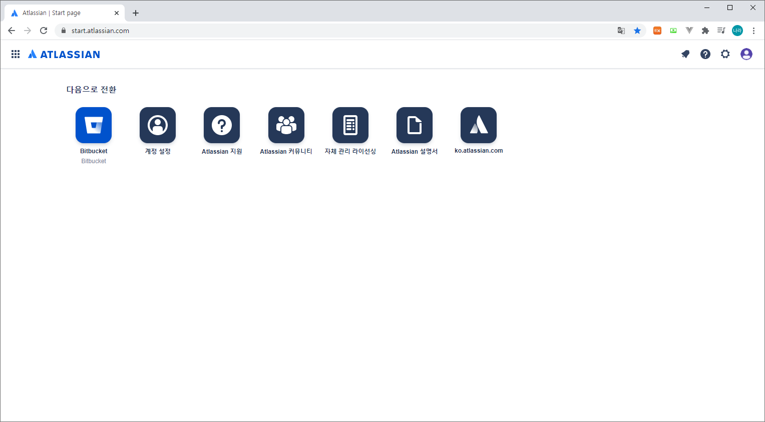 메뉴 항목 중 ko.atlassian.com을 선택하면, atlassian 도구 다운로드 사이트에 접속할 수 있다.