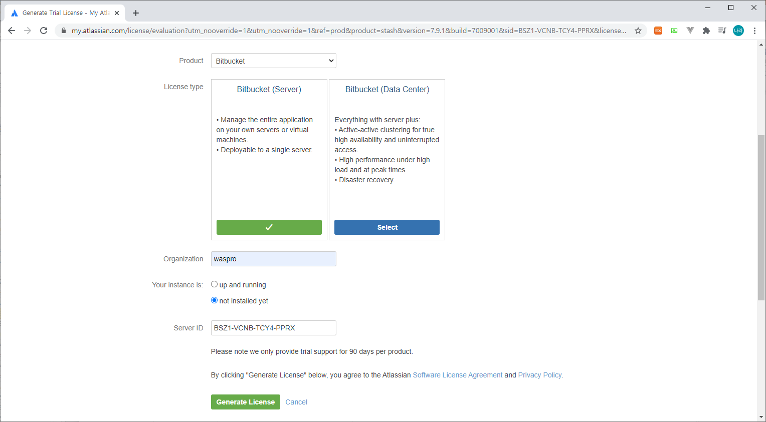> Bitbucket Trial License Download (New Trial License > Product > Bitbucket)