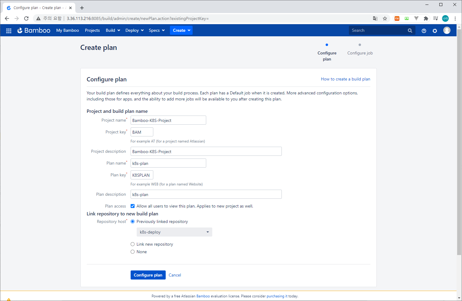 먼저 Bamboo Plan을 생성한다.