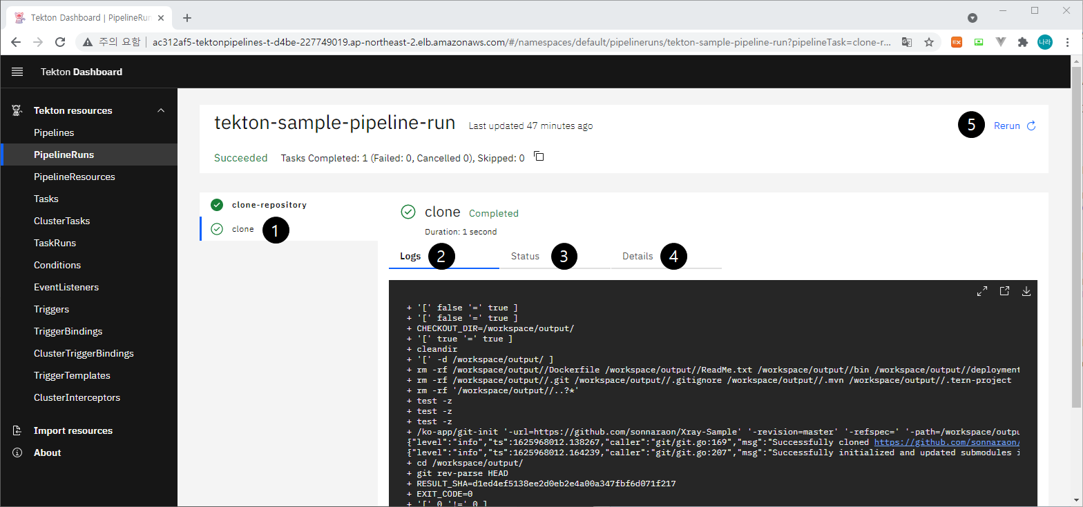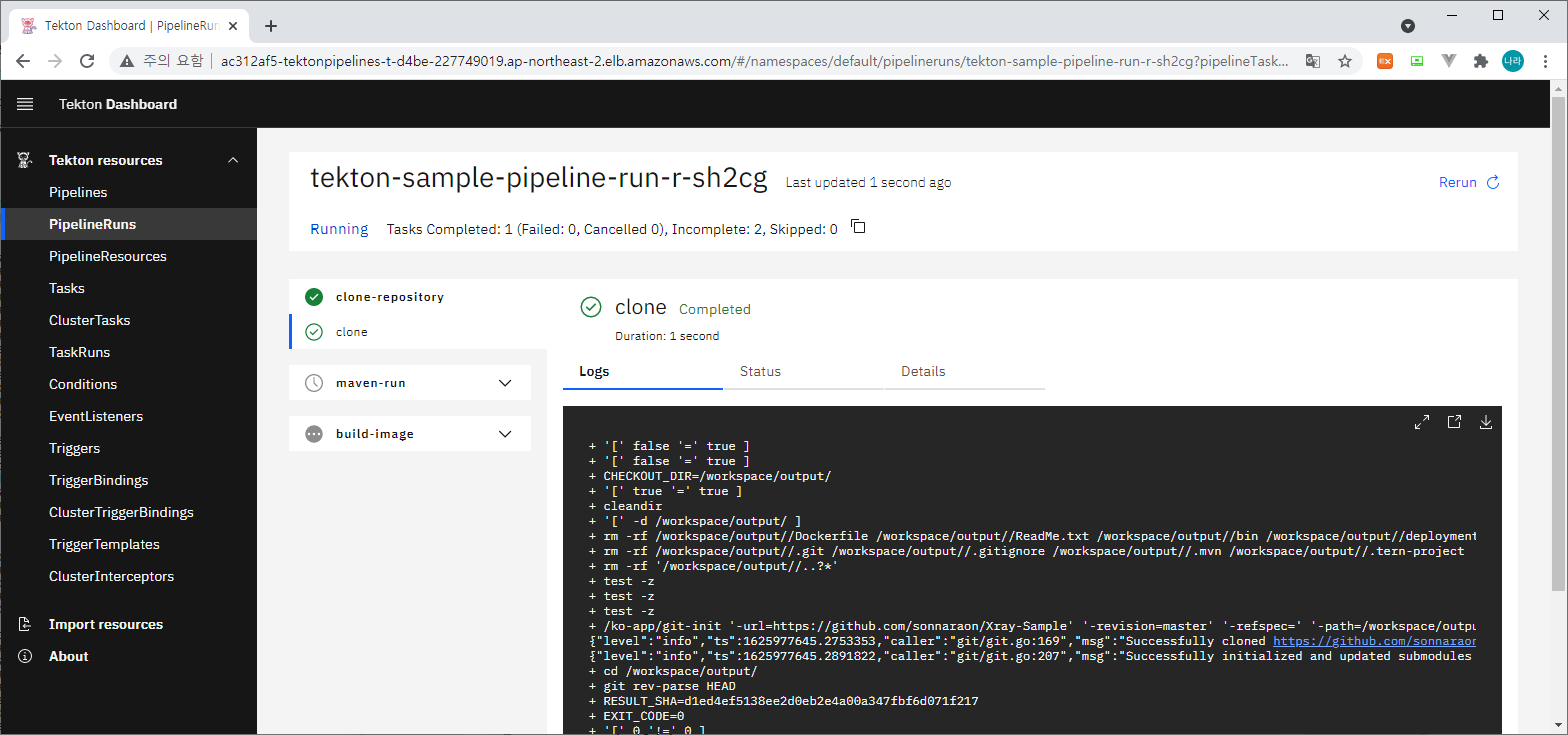 첫번째 Task는 git-clone이다. git-clone은 소스코드를 다운로드 받아 빌드하기 위한 준비과정을 정의한다.