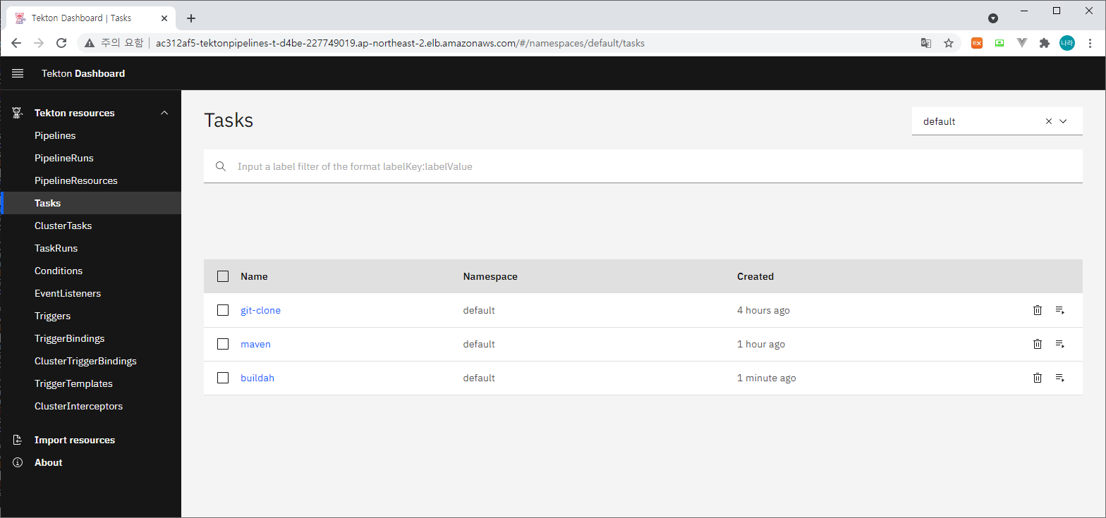[root@ip-192-168-71-110 tekton]# kubectl apply -f https://raw.githubusercontent.com/tektoncd/catalog/main/task/git-clone/0.4/git-clone.yaml