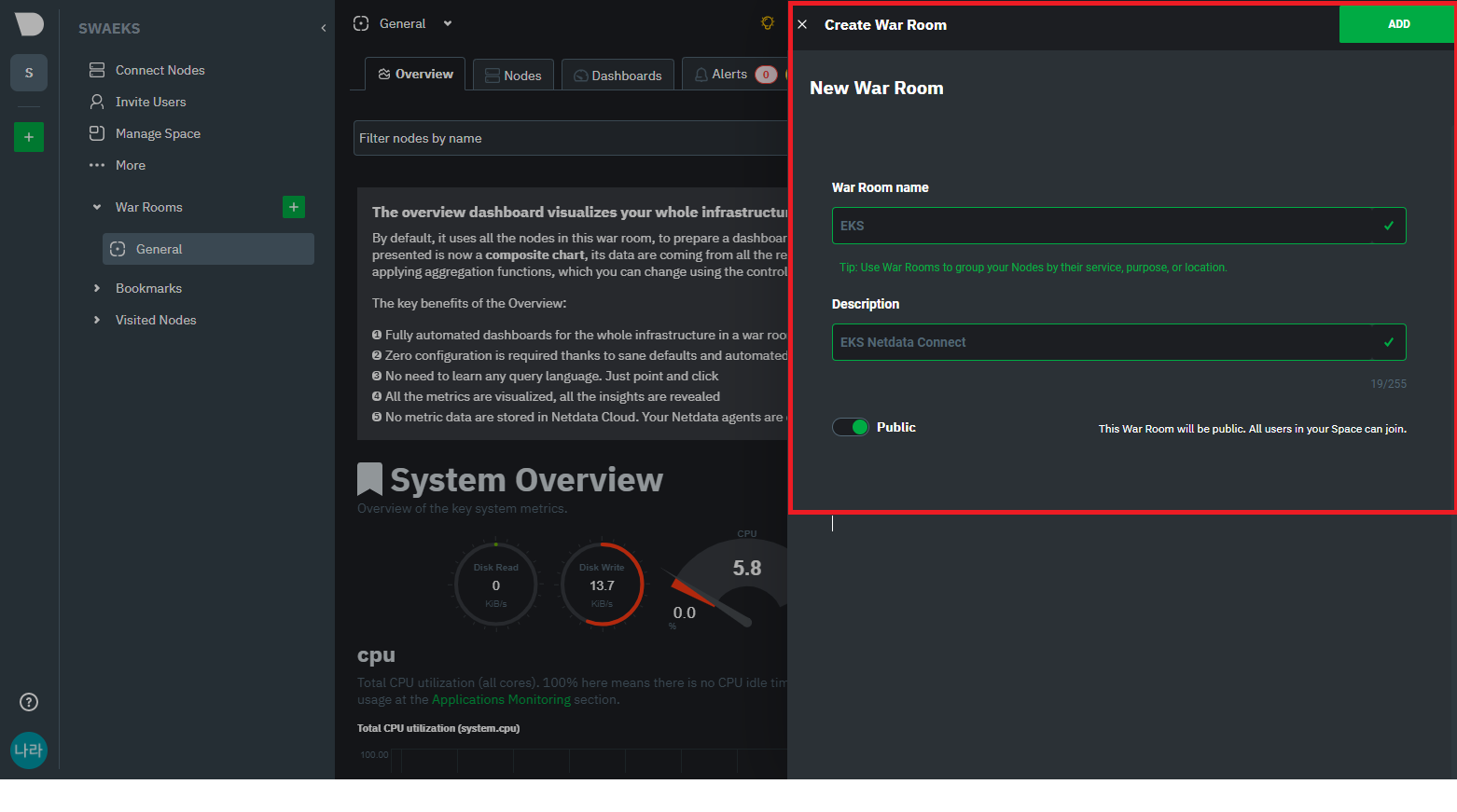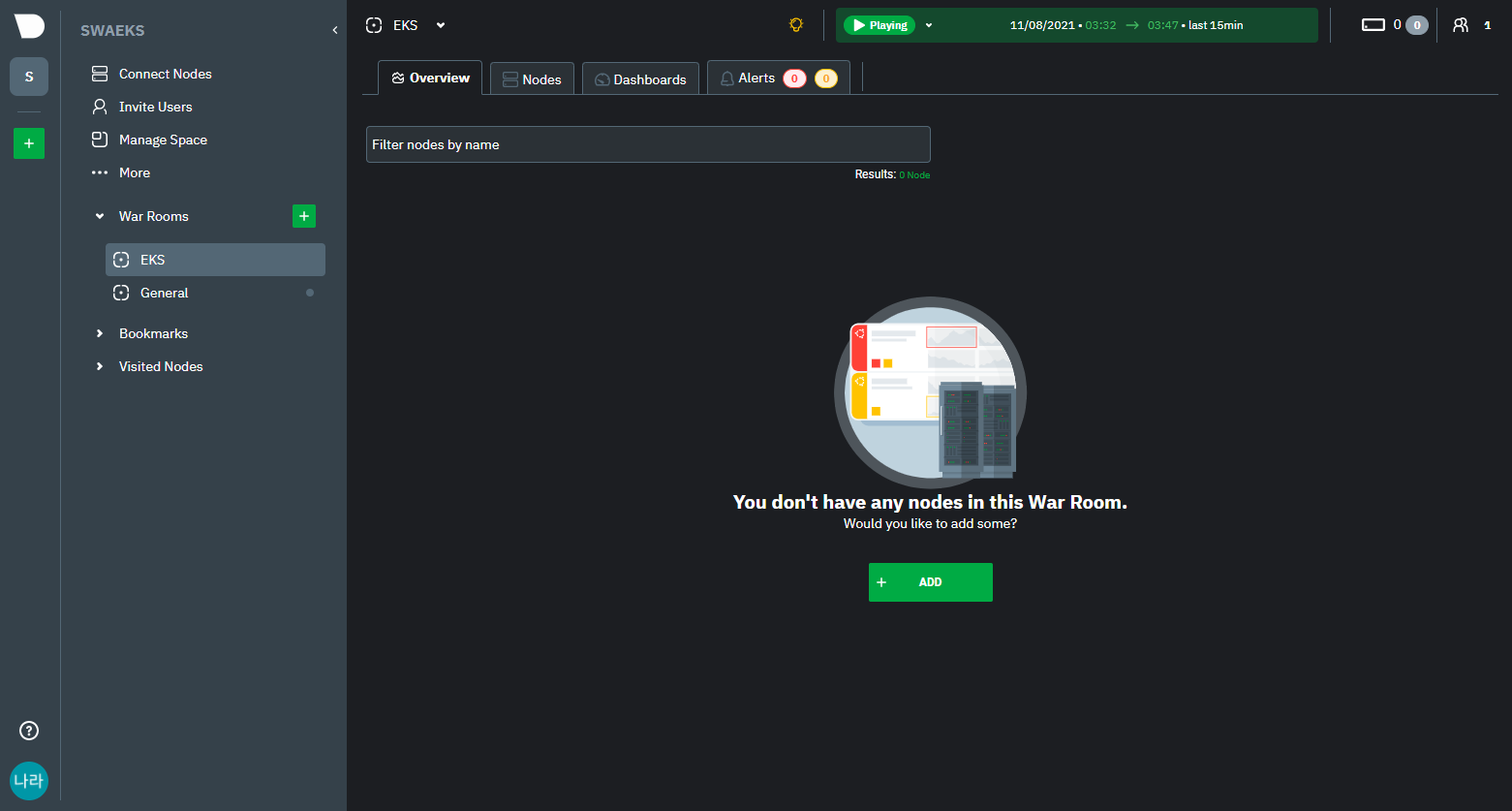 위와 같이 War Room 이름을 지정하고 상단의 ADD 버튼을 클릭한다.