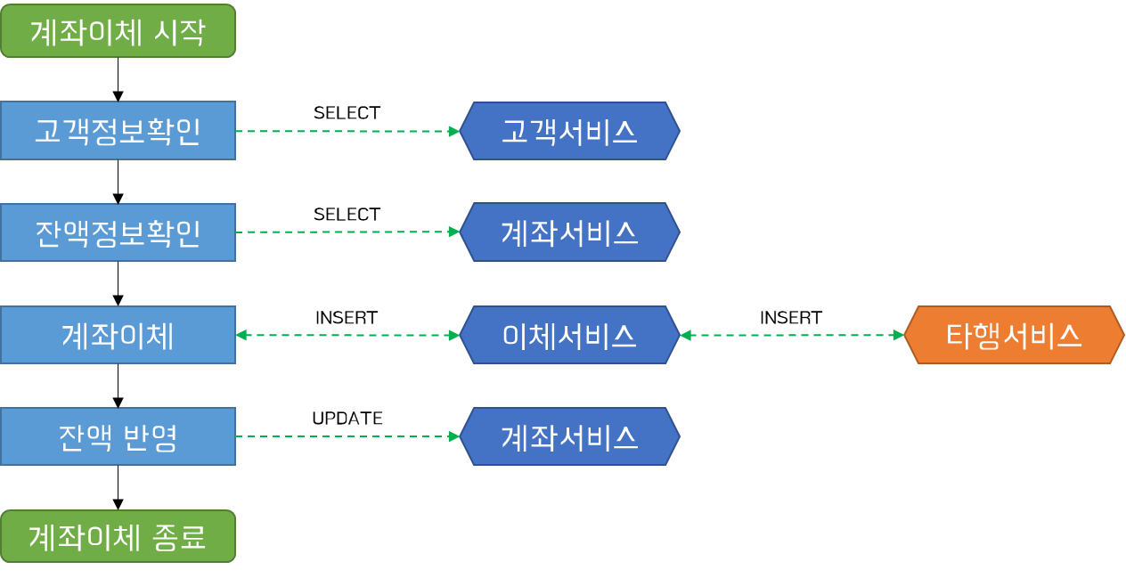 아래와 같이 계좌이체 요청에 대해 비즈니스 흐름을 살펴보도록 하자.