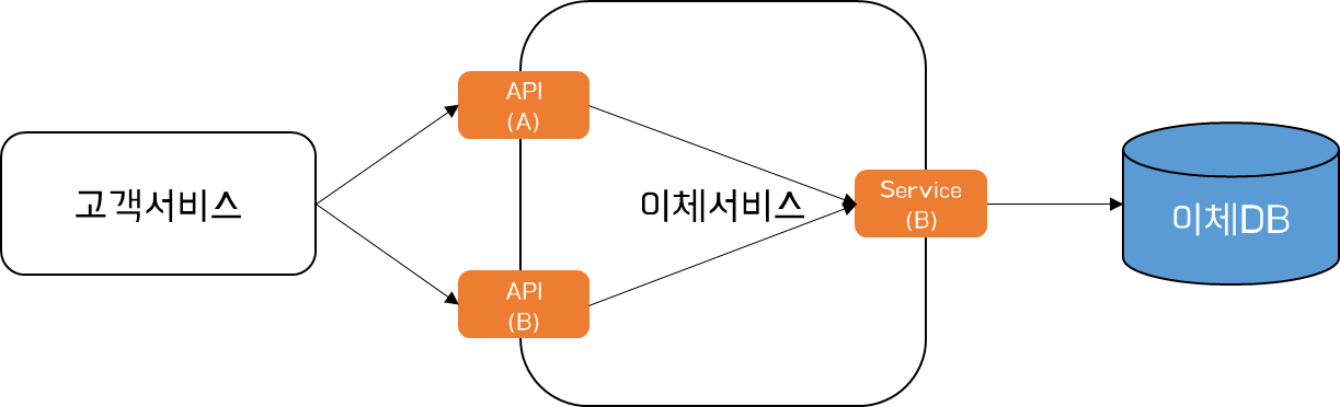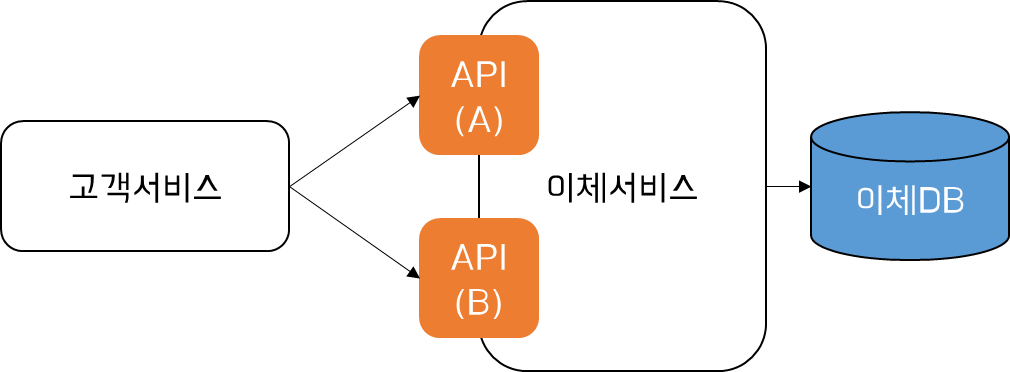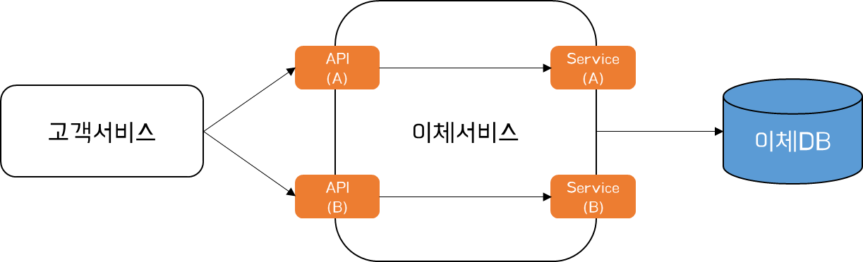 아래는 고객서비스와 이체서비스간 Contract의 관리를 위한 위 두가지 방식에 대한 처리 흐름을 정리한 이미지이다.