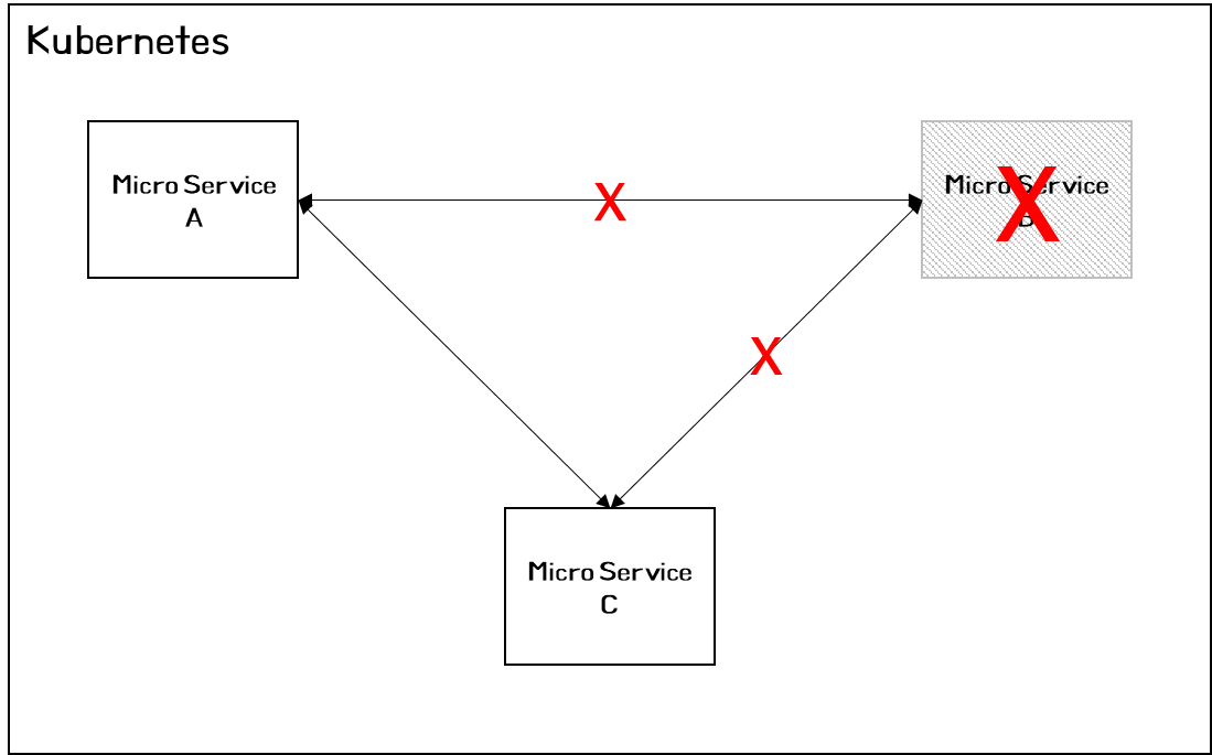 위와 같이 MicroService B가 특정 이유(서비스가 중지되었거나, 서비스 개발팀이 휴가를 갔거나, 네트워크가 차단되었거나 등 수많은 이유)로 인해 접속이 불가능한 경우 MicroService A와 C는 서비스 테스트가 불가능하고, 테스트 자동화 구성이 되어 있는 환경에서는 타 서비스가 기동될 때까지 CI 실패가 발생할 수도 있다.