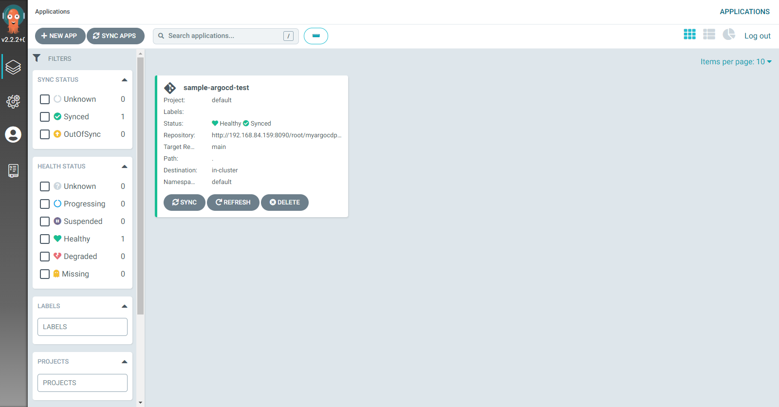 - sample-argocd-test : New App으로 배포한 argocd application