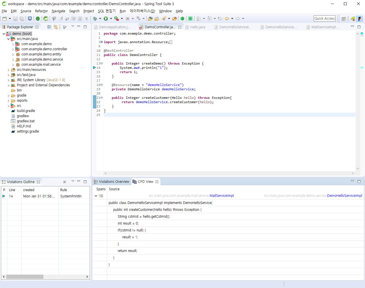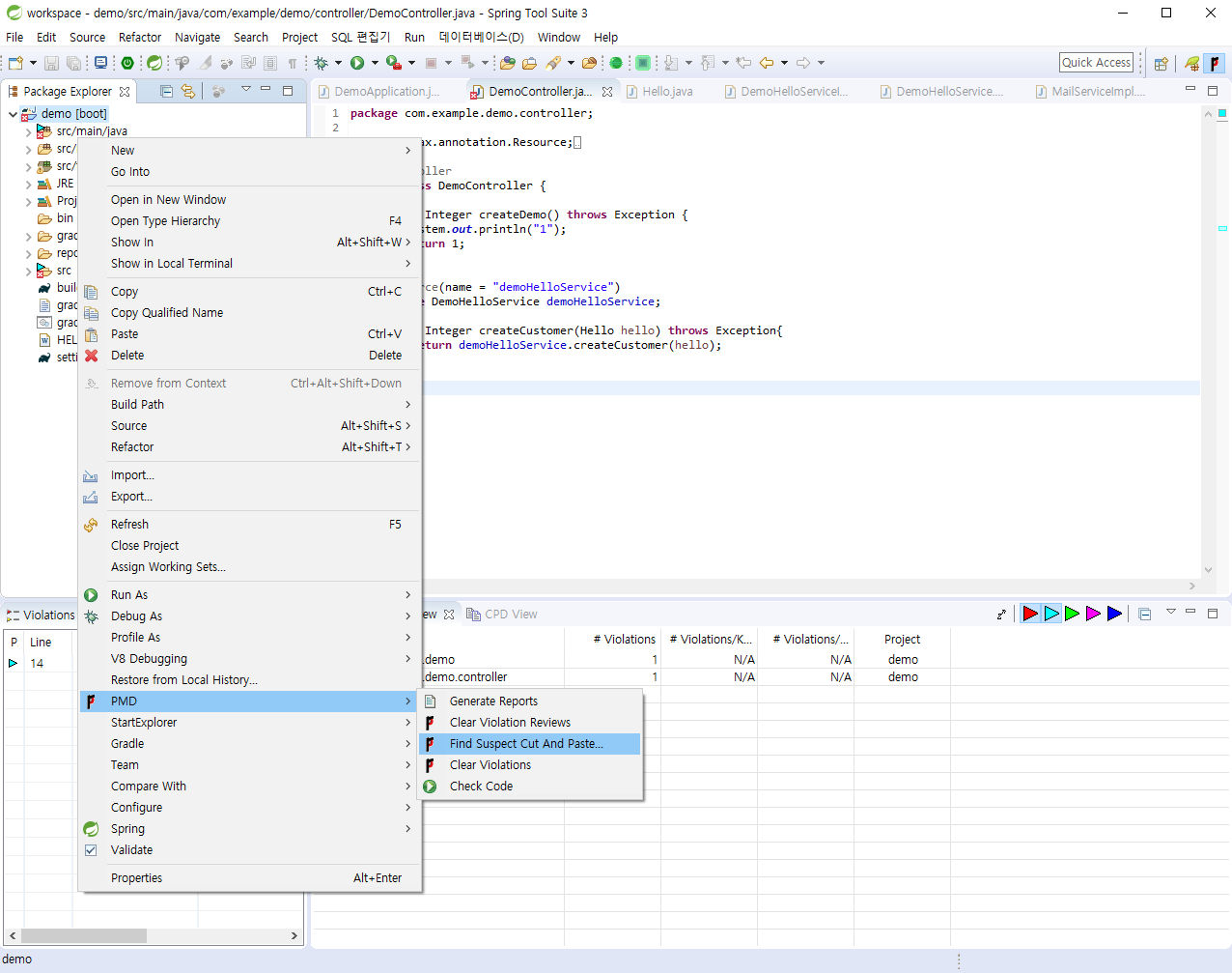 한 차례 리스타트 후 pmd 정적분석 도구를 사용할 수 있다.