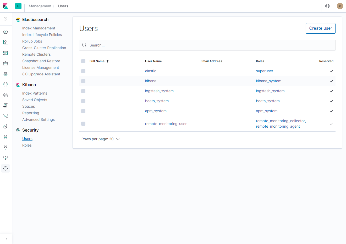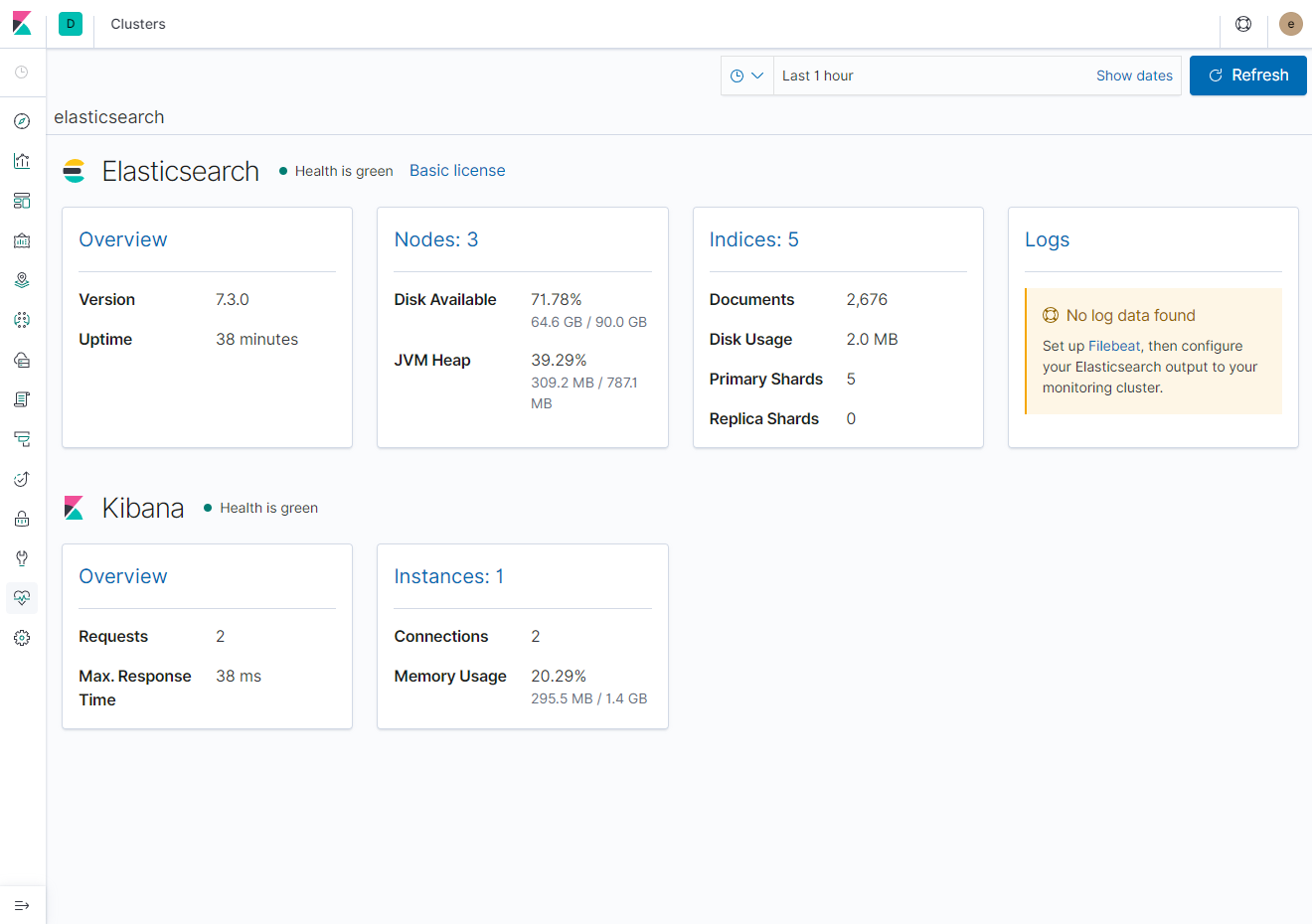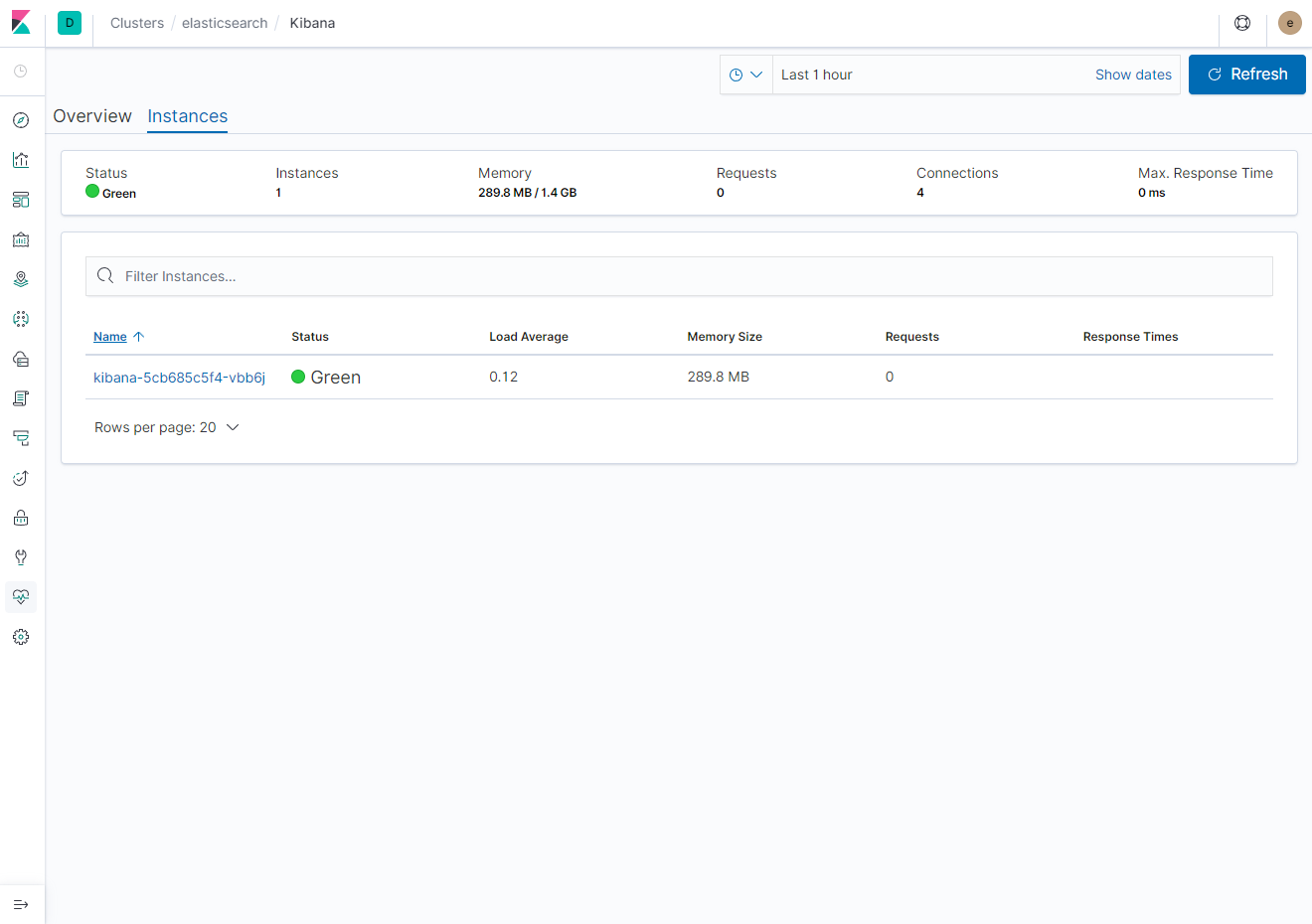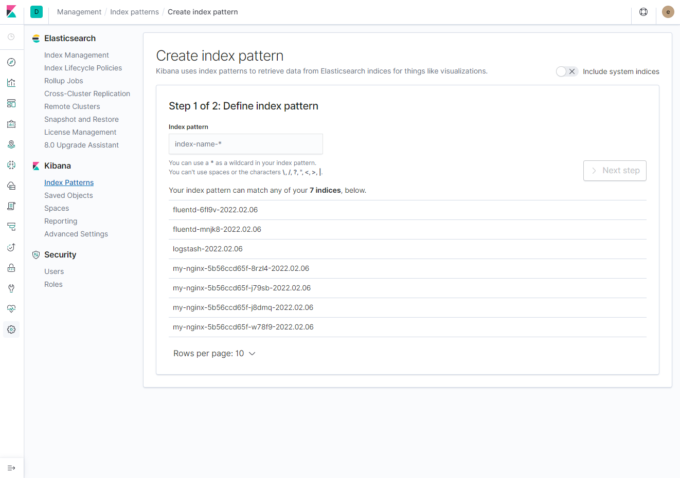 정상 Running 상태로 기동이 되었다면, 각각 페이지 정상 호출 여부를 확인하고, 아래와 같이 kibana index pattern을 확인해 보자.