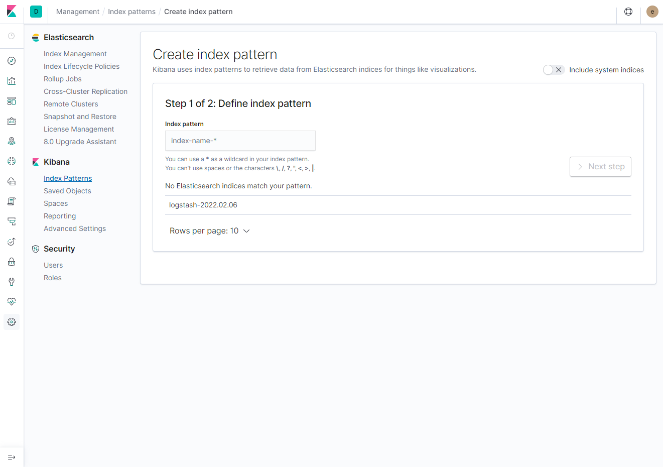> index pattern 변경