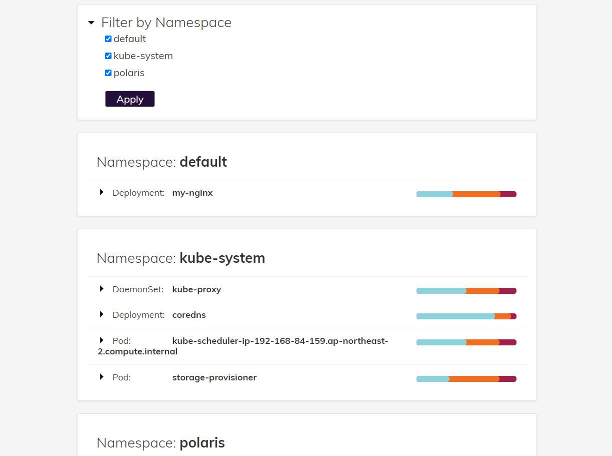 Polaris는 Kubernetes Pod 및 Controller가 모범 사례를 사용하여 구성되었는지 확인하기 위해 다양한 검사를 실행하여 향후 발생 가능한 문제를 사전에 방지하는데 도움을 주는 도구이다.