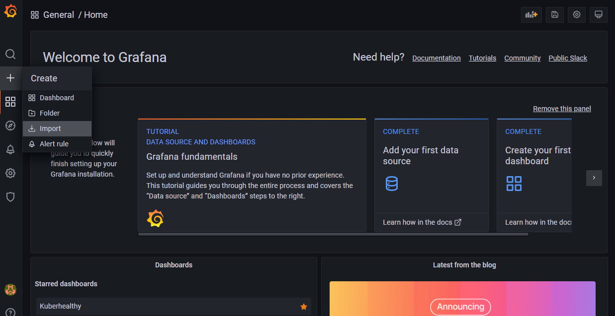 Grafana는 default ID : admin, PW : prom-operator로 로그인할 수 있다.
