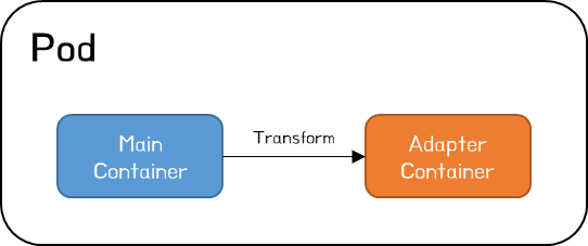 대표적인 Adapter Pattern으로는 로깅 모듈, 공통 모듈, 인터페이스 모듈이 있다. 예를 들어 Kubernetes 클러스터에 log aggregation 환경을 구성할 경우 로그 형태에 따라 추적 분석할 수 있도록 형태를 정형화해야 한다. 그러나 클러스터에는 다양한 형식의 로그를 출력하는 다양한 언어로 작성된 다수의 어플리케이션이 존재할 수 있다. 특히 log aggregation을 위한 도구(elasticsearch, splunk 등)가 변경될 경우 모든 어플리케이션에서 로깅 형태를 다시 변경해야 한다면, 이는 굉장히 비효율적인 업무 처리 방식이 될 것이다. 이 문제를 해결하기 위해 기본 어플리케이션 컨테이너(Main Container)의 로그를 읽고 모니터링 도구에서 원하는 형식으로 변환하여 처리하는 Adapter Container를 생성할 수 있다.