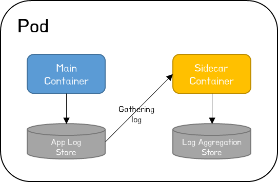 Main Container를 변경하지 않고 기능을 적용하고 향상시킬 수 있다. 예를 들어 특정 폴더에 로그 파일을 생성하는 애플리케이션이 있는 경우 Sidecar Container는 App log를 Streaming 또는 File처리 로직을 통해 전체 로그를 수집하는 Cluster Log Store로 복제할 수 있다. 이때, Main Container는 이를 위해 별도의 수정이 발생하지 않는다.