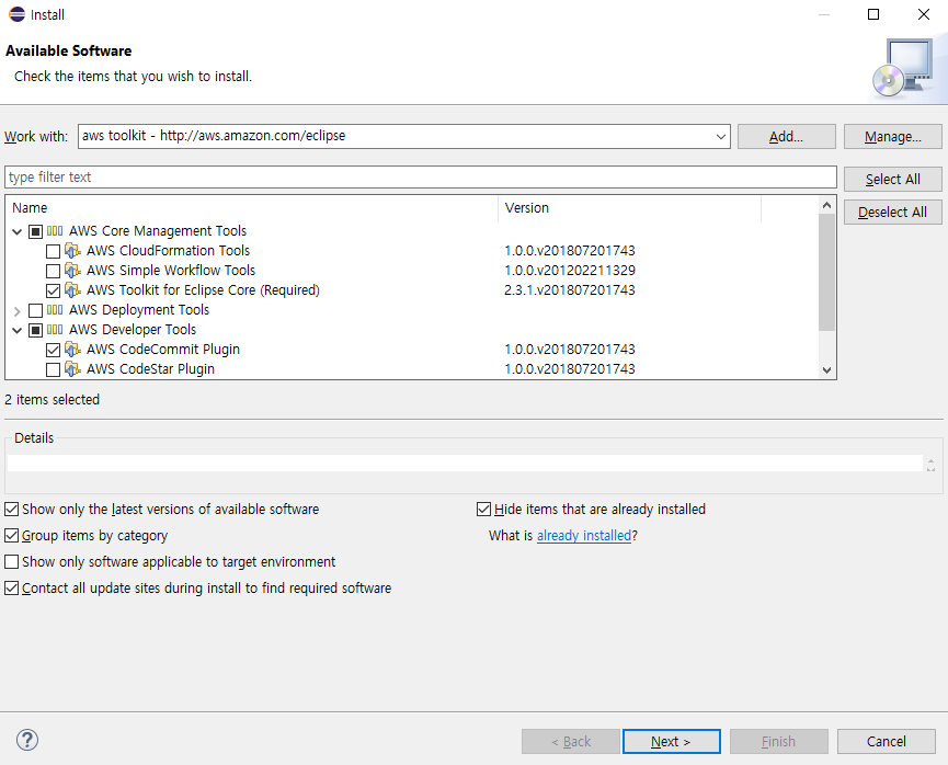 - AWS Core Management Tools - AWS Toolkit for Eclipse Core (Required)