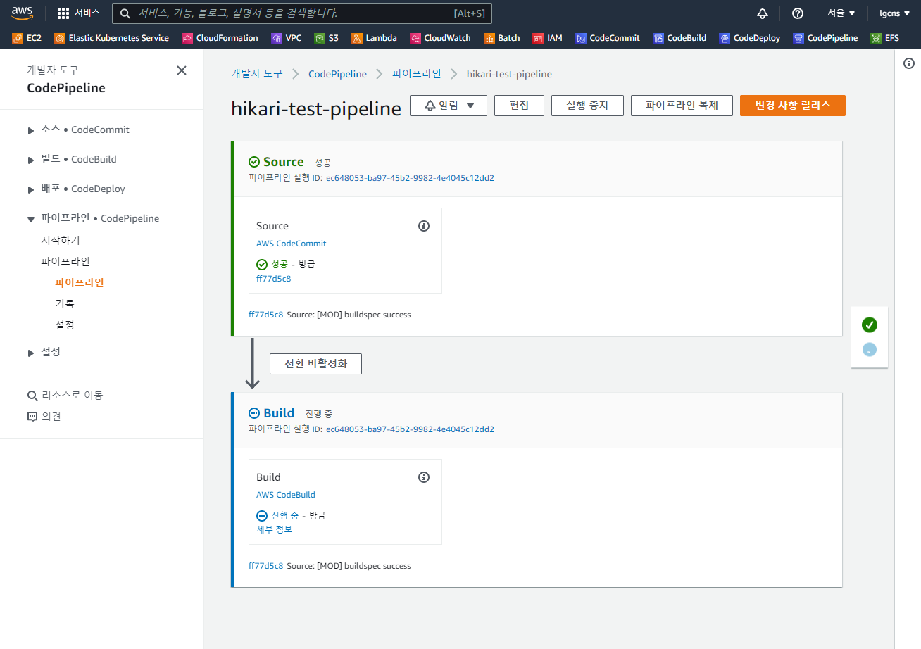 ▶ CodeCommit 변경 반영 확인