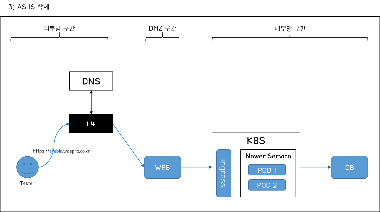 - Blue 영역(AS-IS) : stable.waspro.co.kr(예시) > L4 > AS-IS WEB > AS-IS Container Mgmt > DB